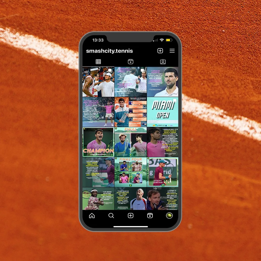 Create social media post that are themed around the latest Tennis tournaments throughout the world. Post are to be created in real time to present the winners in a creative light on @smashcity.tennis.